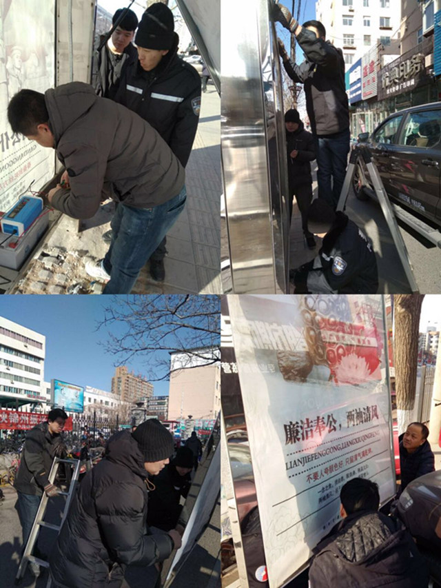 為確保春節和兩會期間安全生產工作順利進行,通誠廣告公司設備科和業務科積極開展每日自檢自查,主要針對出租車乘降站及公交候車亭進行安全大檢查。
