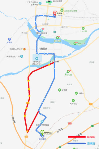 205路 從2021年5月8日開始,因阜錦線南山西側(cè)隧道封閉施工,205路(錦州站—錦州南站方向)車輛無法正常通行,由中央南街改行南廣路、凌西大街、渤海大道至嵩山路返回原線路,不經(jīng)過金城御瀾山暻園、桃源小鎮(zhèn)路口和桃園3處單側(cè)公交站點。增設(shè)碧盛慧(210路)、公交三公司(215路)、北鋪(215路)、桃園道口(215路)、大圍子(215路)、車輛管理所(215路)、北三道壕(215路)和市松山紙板公司(215路)8處單側(cè)公交站點,待道路具備通行條件后,立即恢復(fù)運(yùn)行原線路;錦州南站—錦州站方向按原線路運(yùn)行。