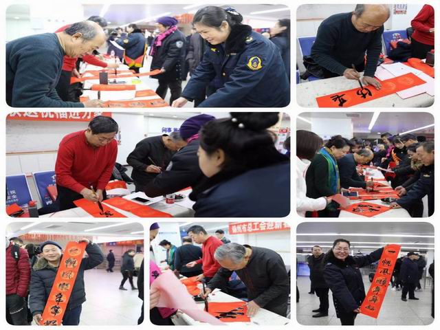 1月29日上午10:00,錦州客運站售票大廳內(nèi)洋溢著濃濃的節(jié)日氣氛,由錦州市總工會主辦的“迎新春寫春聯(lián)送祝福進萬家”活動,在客運站售票大廳內(nèi)熱烈展開。 書法家們揮毫潑墨,以筆為友,以字傳情,用春聯(lián)為到站乘車的廣大旅客和客運站干部職工送來了新春的慰問及節(jié)日的祝福。 活動現(xiàn)場人頭攢動,熱鬧不已,短短1個多小時,書法家們就書寫了幾十副春聯(lián)和“福”字。一副副行云流水的丹青墨寶,一句句寓意美好的春聯(lián),為客運站的春節(jié)旅客運輸工作送上了一道道“文化大餐”,也給即將來臨的新春佳節(jié)增添了濃濃的年味兒。 客運站黨委書記、總經(jīng)理閆麗梅親臨活動現(xiàn)場表示錦州市總工會開展的“迎新春寫春聯(lián)送祝福進萬家”活動,不僅使廣大旅客在客運站內(nèi)感受到了歡樂的節(jié)日氣氛,同時也弘揚了我國書法藝術的魅力,增加廣大職工群眾對中國傳統(tǒng)文化的熱愛,使客運站的年味兒有層次、有內(nèi)涵。