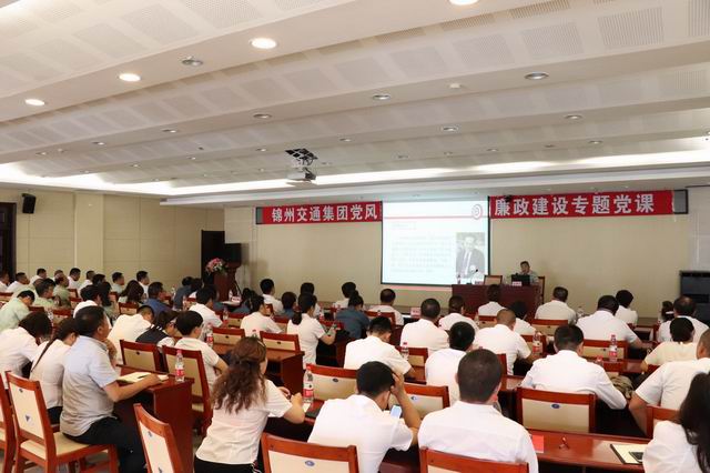 為迎接建黨98周年,做好交通集團黨風廉政建設工作,增強集團黨員干部廉潔從業意識和紀律意識,6月26日下午,交通集團黨委舉辦黨風廉政建設專題黨課。集團領導班子成員、中層干部及各基層單位領導班子成員、中層干部共90余人參加了黨課培訓。 黨課由錦州市委黨校法學教研室主任劉穎教授主講。劉教授從新修訂的《中國共產黨紀律處分條例》的重大意義和顯著特征、《條例》修訂的亮點及主要內容兩個方面詳細解讀了新條例。然后就如何學習貫徹新條例做合格黨員提出了三點要求。劉教授的講解理論功底深厚,內容深入淺出,使集團廣大干部接受了一場深刻的黨風廉政建設教育,并為集團下一步的黨風廉政建設工作開拓了思路,提供了行動指南。 黨課由集團黨委書記、董事長王琳主持。最后,王琳書記對集團黨員干部提出三點要求:1、深刻理解這次黨風廉政建設專題黨課的重要意義,加強集團黨員干部廉潔從業的意識。2、把廉潔自律的優良傳統貫徹到實際工作中,國有企業領導人員要做到對黨忠誠、勇于創新、治企有方、興企有為、清正廉潔。3、各單位要做好此次黨風廉政建設專題黨課的落實工作,堵塞制度漏洞,以審計整改為契機,建立健全各項規章制度,筑牢不能腐的制度防線,全面加強黨風廉政建設,為集團各項事業發展提供堅強紀律保障。